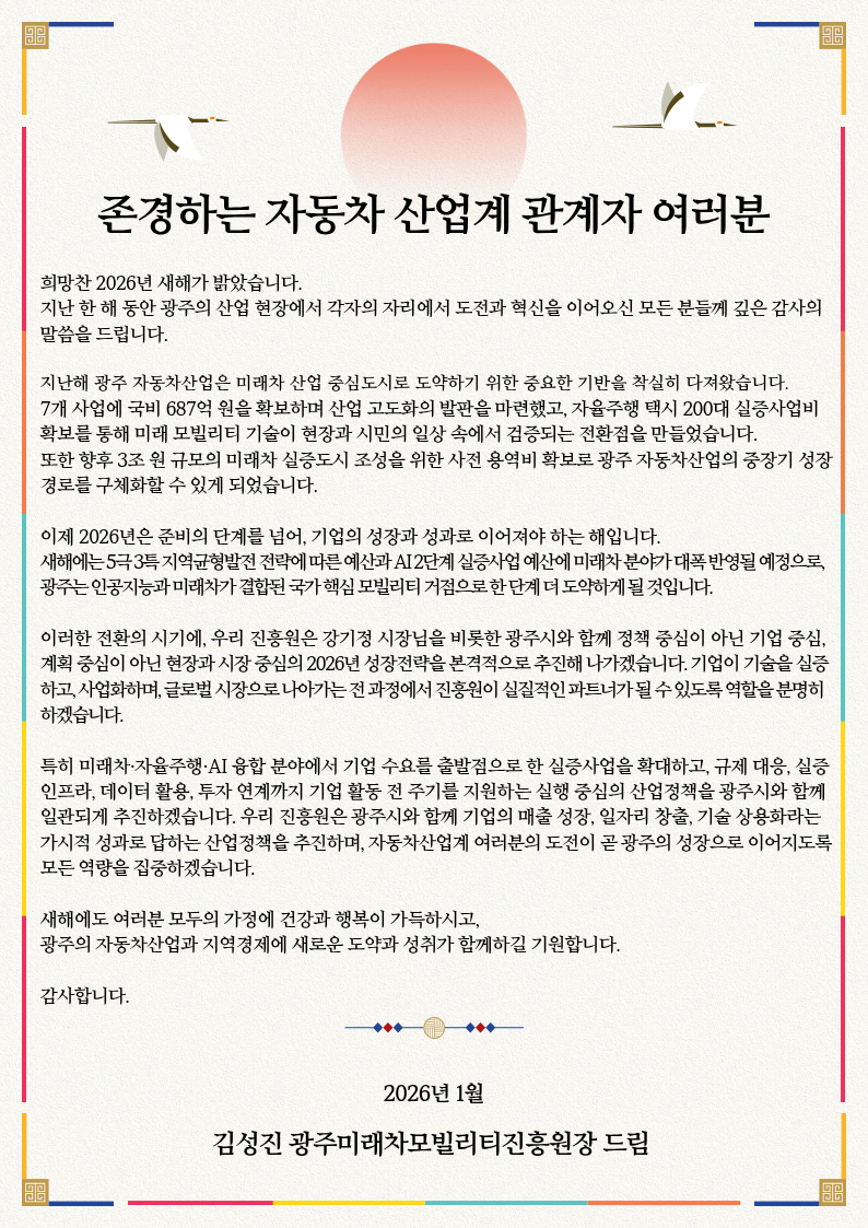 - 강기정 시장, 기아 오토랜드광주 임직원 격려 2026.01.15