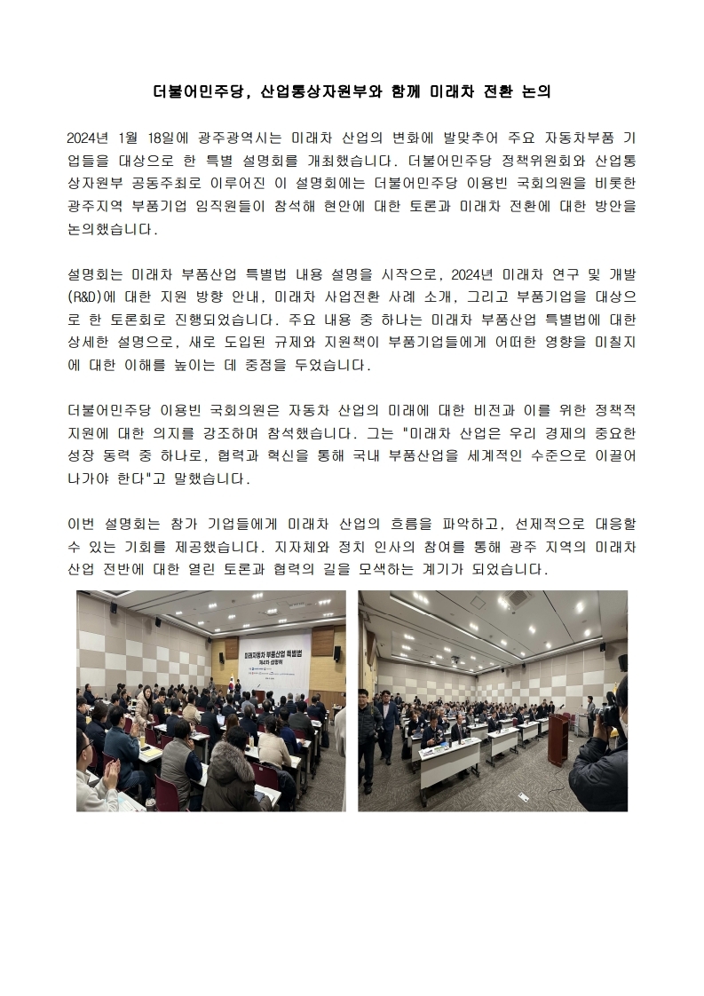 더불어민주당, 산업통상자원부와 함께 미래차 전환 논의