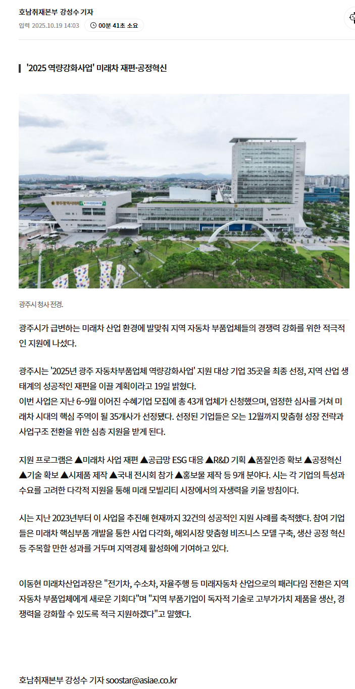 광주시, 자동차부품업체 35곳 맞춤형 지원(링크)